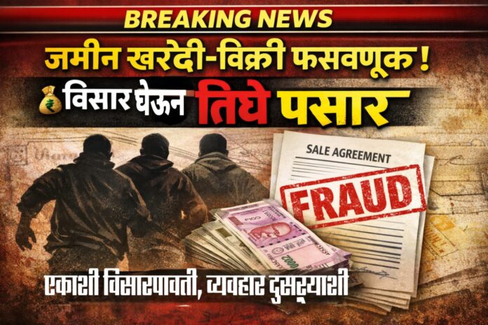 - मात्र, संबंधित जमीन परस्पर दुसऱ्यालाच विक्री केल्याचा आरोप असून, स्वीकारलेली रक्कम परत न करता फिर्यादीची फसवणूक केल्याचे तक्रारीत म्हटले आहे.