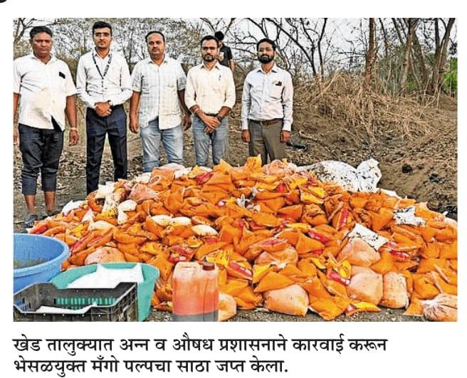 рд░рд╛рдЬрдЧреБрд░реБрдирдЧрд░ : рдЦреЗрдб рддрд╛рд▓реБрдХреНрдпрд╛рдд рдЕрдиреНрди рд╡ рдФрд╖рдз рдкреНрд░рд╢рд╛рд╕рдирд╛рдиреЗ рдореЛрдареА рдХрд╛рд░рд╡рд╛рдИ рдХрд░рдд рднреЗрд╕рд│рдпреБрдХреНрдд рдордБрдЧреЛ рдкрд▓реНрдкрдЪрд╛ рд╕рд╛рдард╛ рдЬрдкреНрдд рдХреЗрд▓рд╛ рдЖрд╣реЗ. рд░рд╛рдХреНрд╖реЗрд╡рд╛рдбреА рдпреЗрдереАрд▓ рдЕрд╡рд┐рд╖реНрдХрд╛рд░ рдПрдВрдЯрд░рдкреНрд░рд╛рдпрдЭреЗрд╕ рдЖрдгрд┐ рдорд╛рд╡рд│ рддрд╛рд▓реБрдХреНрдпрд╛рддреАрд▓ рдЙрд░рд╕реЗ рдпреЗрдереАрд▓ рдорд╣рдВрдордж рдПрдХрд░рд╛рдореБрд▓ рдЙрд░реНрдл рдЕрдХреНрд░рдо рдЧреБрд▓рд╛рдо рдпрд╛рдВрдЪреНрдпрд╛рдХрдбреВрди рддрдмреНрдмрд▓ рдЕрдбреАрдЪ рд▓рд╛рдЦ рд░реБрдкрдпрд╛рдВрдЪрд╛ рдореБрджреНрджреЗрдорд╛рд▓ рдЬрдкреНрдд рдХрд░рдгреНрдпрд╛рдд рдЖрд▓рд╛. рдпрд╛ рдкреНрд░рдХрд░рдгрд╛рдореБрд│реЗ рдкрд░рд┐рд╕рд░рд╛рдд рдЦрд│рдмрд│ рдЙрдбрд╛рд▓реА рдЖрд╣реЗ.